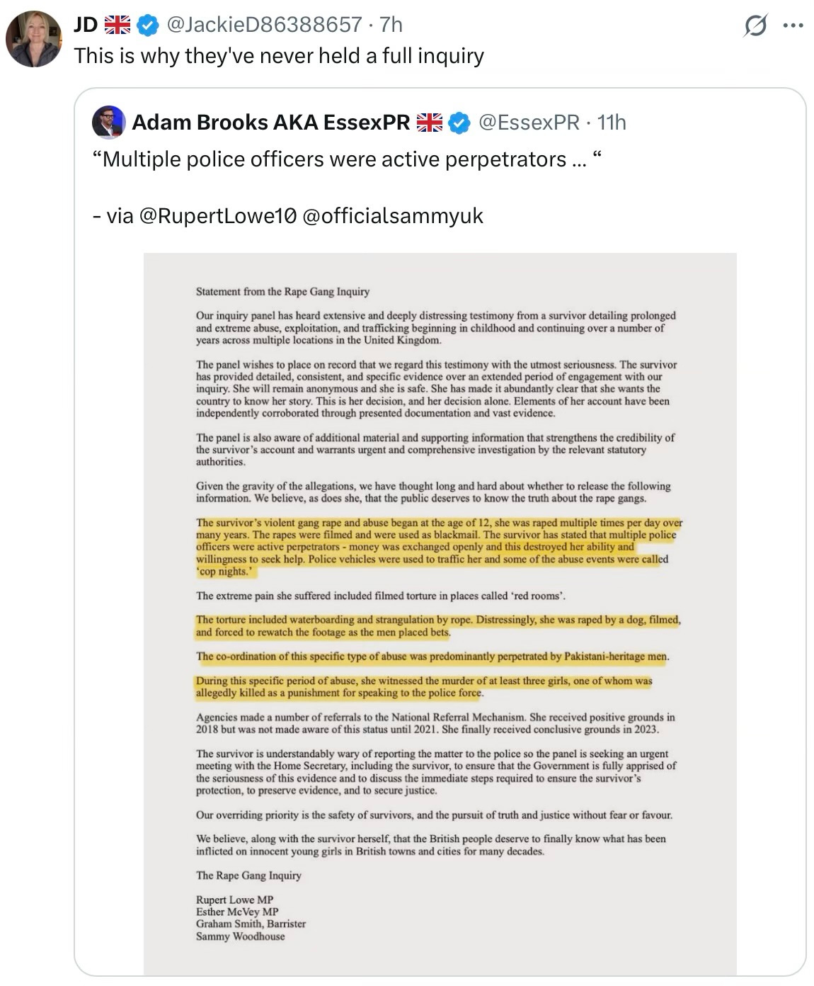 If they say they did not know … why did they not know? Were they not part of the Rape Gang Inquiry?